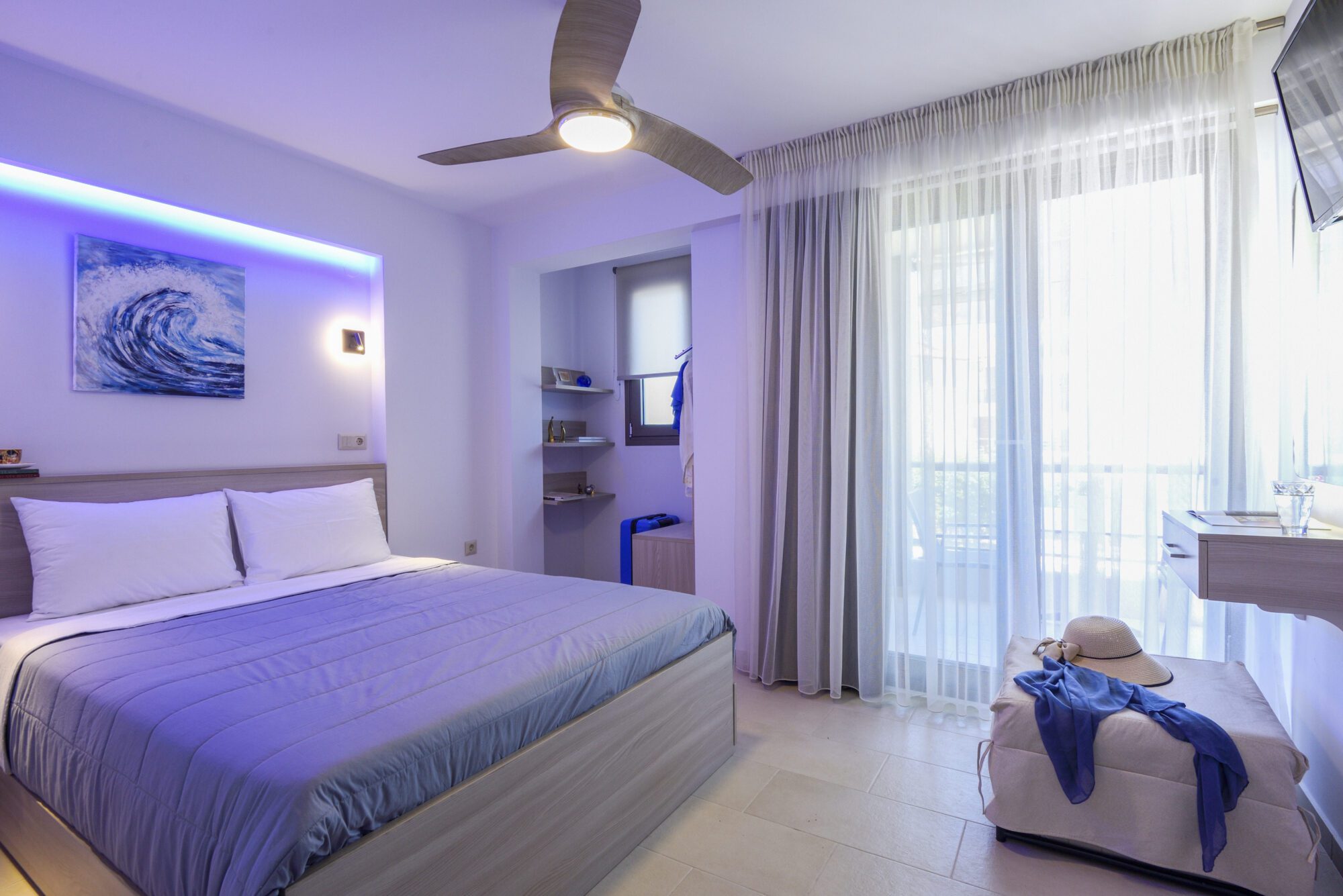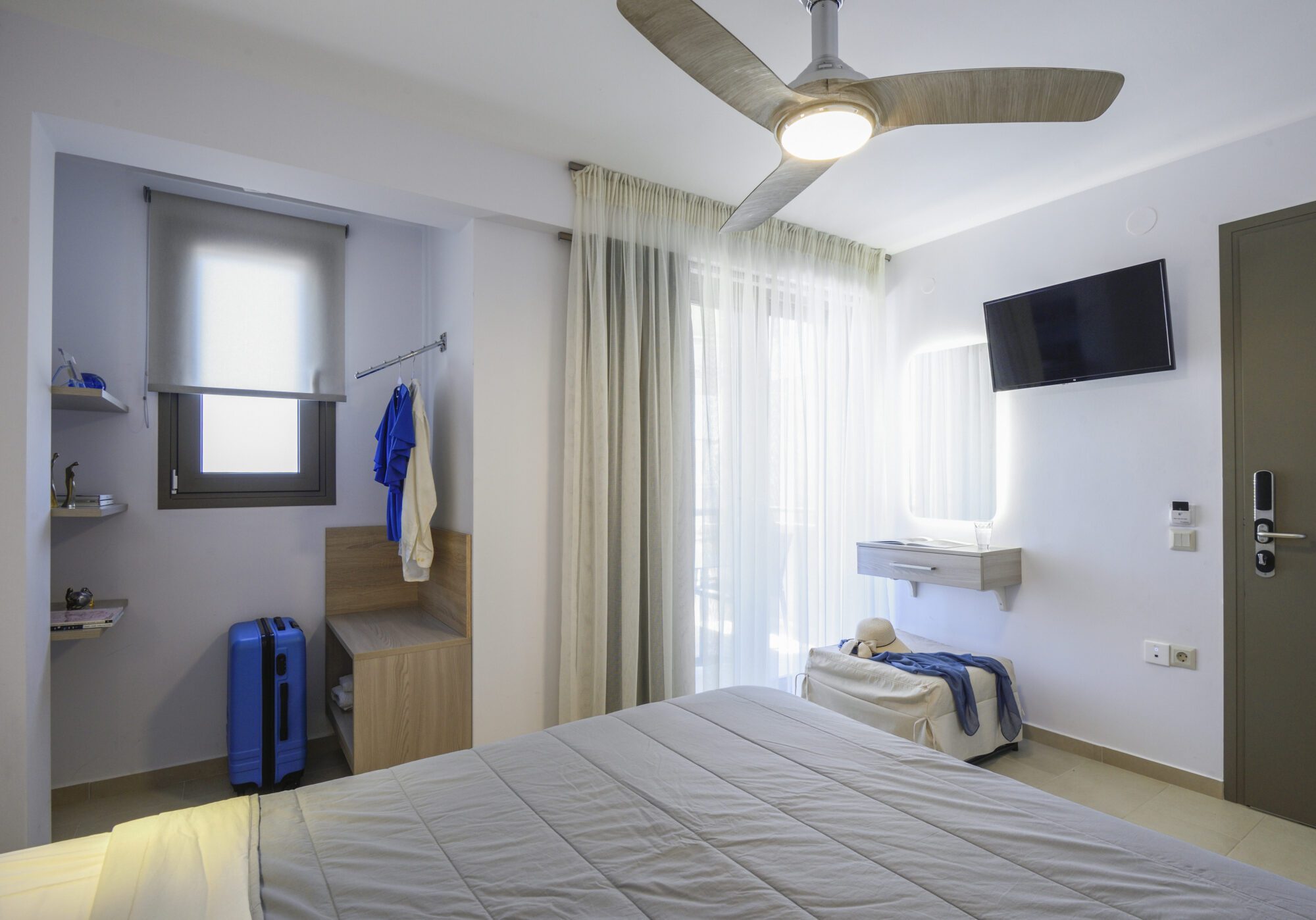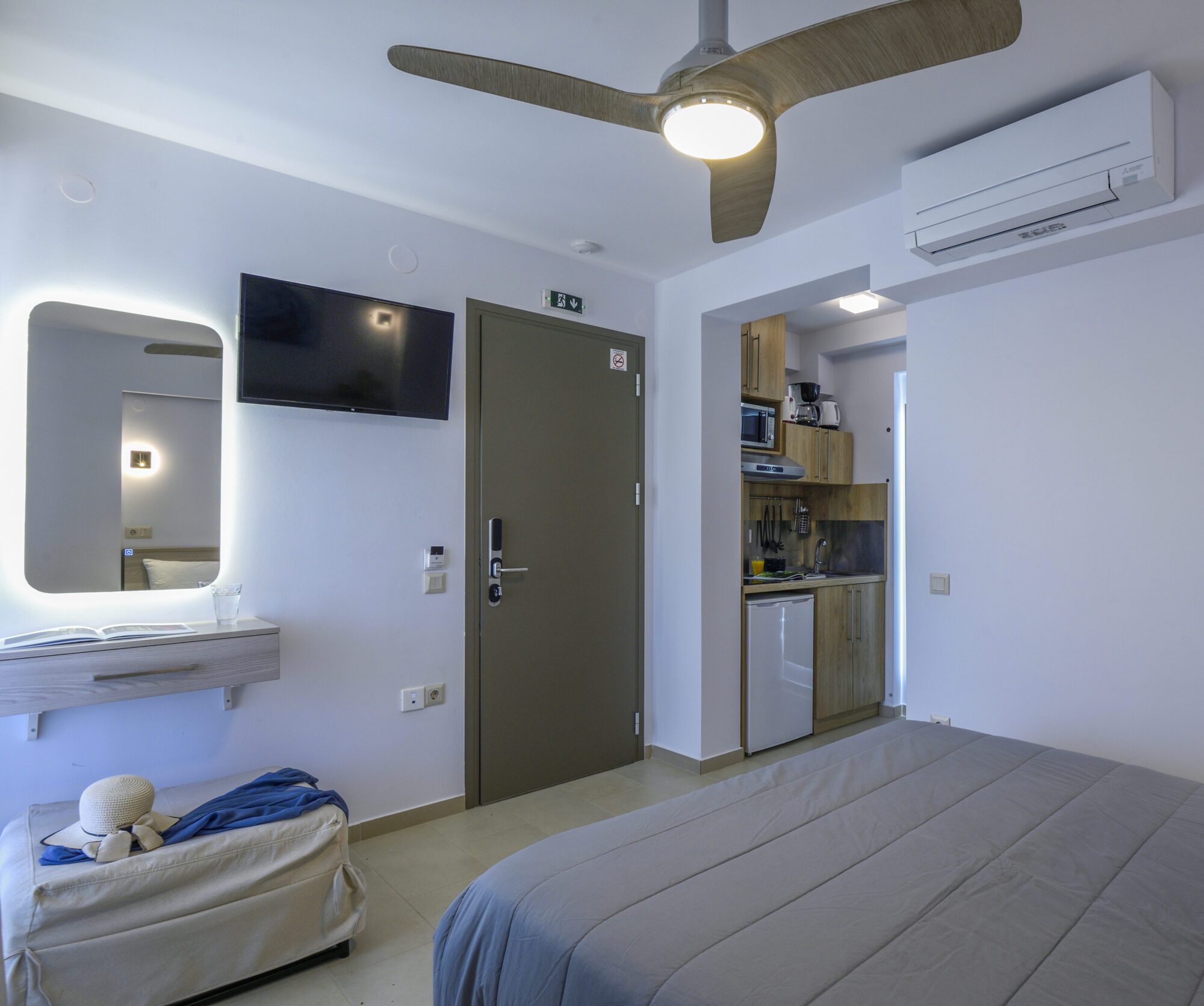 Private balcony sea view. Studio with double bed and two extra beds when needed. Fully equipped kitchen and bathroom.